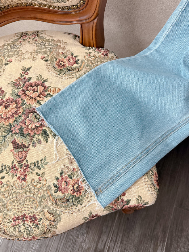 デニムスタイルにさりげない華やぎを添えるPearl Denim Pants。